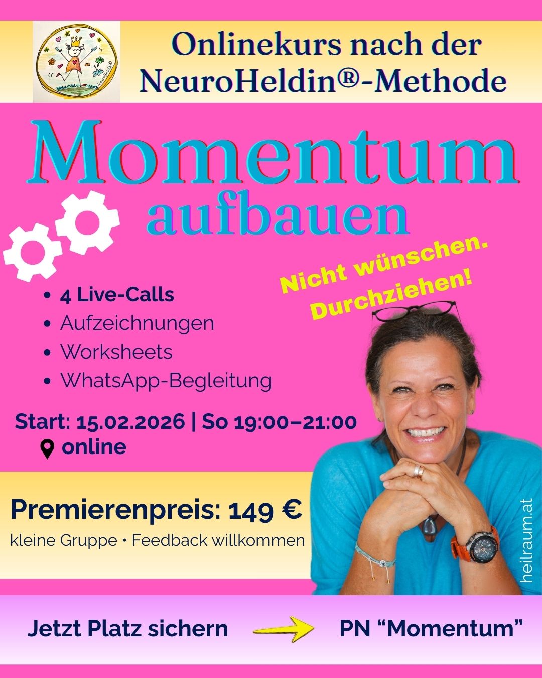 🎯 Dann ist Momentum dein Kurs. Momentum ist die Brücke zwischen „Ich will“ und „Ich hab´s geschafft“.